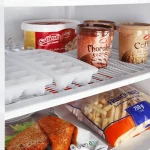 در داخل یخچال فریزر کمبی برفاب مدل 70-30 فضای بسیار مناسبی برای نگهداری انواع مواد غذایی وجود دارد. بخش یخچال دارای طبقات شیشهای نشکن با قابلیت تنظیم ارتفاع است تا بتوانید ظروف و بطریهای بزرگ را نیز بهراحتی جای دهید. در قسمت درب یخچال نیز قفسههای مخصوص بطری، لبنیات و تخممرغ طراحی شده تا فضای داخلی به بهترین شکل استفاده شود. فریزر پایین دستگاه هم شامل چند کشوی جادار و دربدار است که امکان تفکیک مواد منجمد را به شما میدهد.